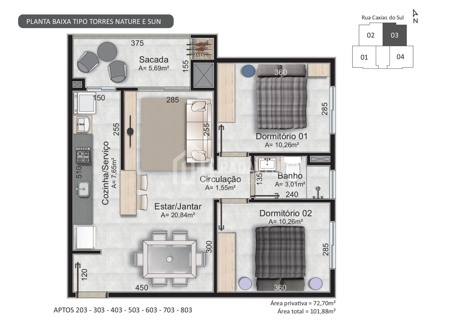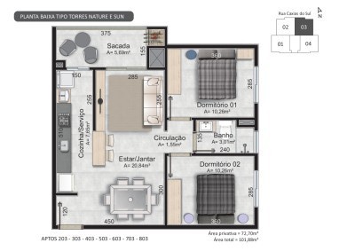 Área Privativa › 72,70m²