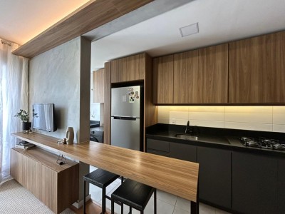 Cozinha: móvel sob medida, cooktop e microondas.