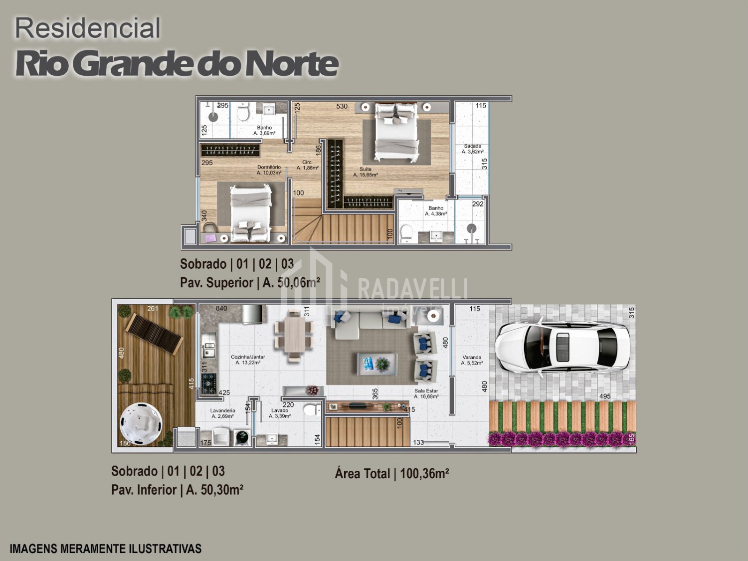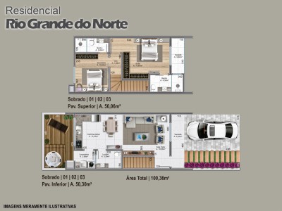 Sobrado Nº 02 e 03: Área de 100,36 m2, composto de 02 suítes uma delas com