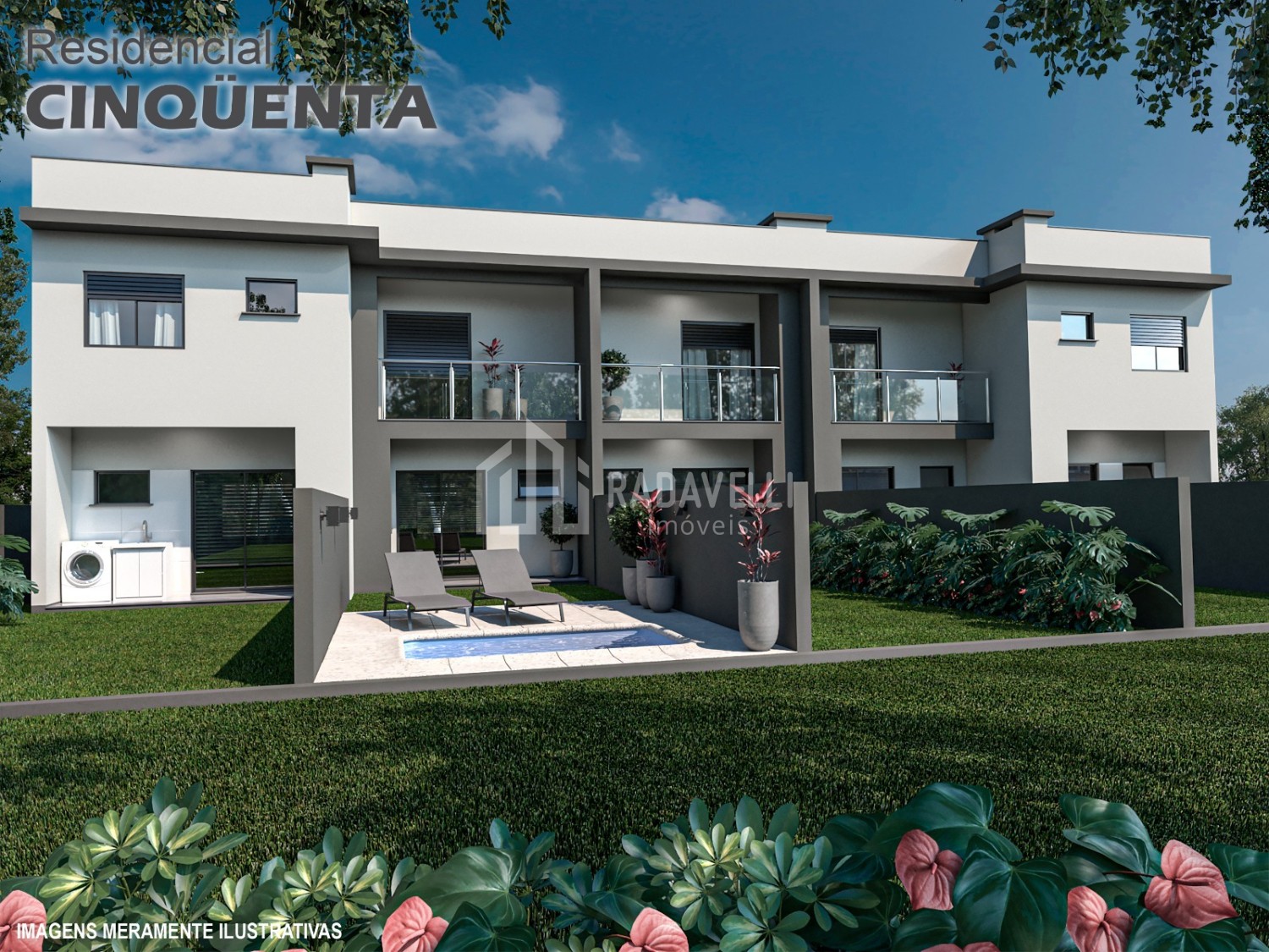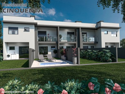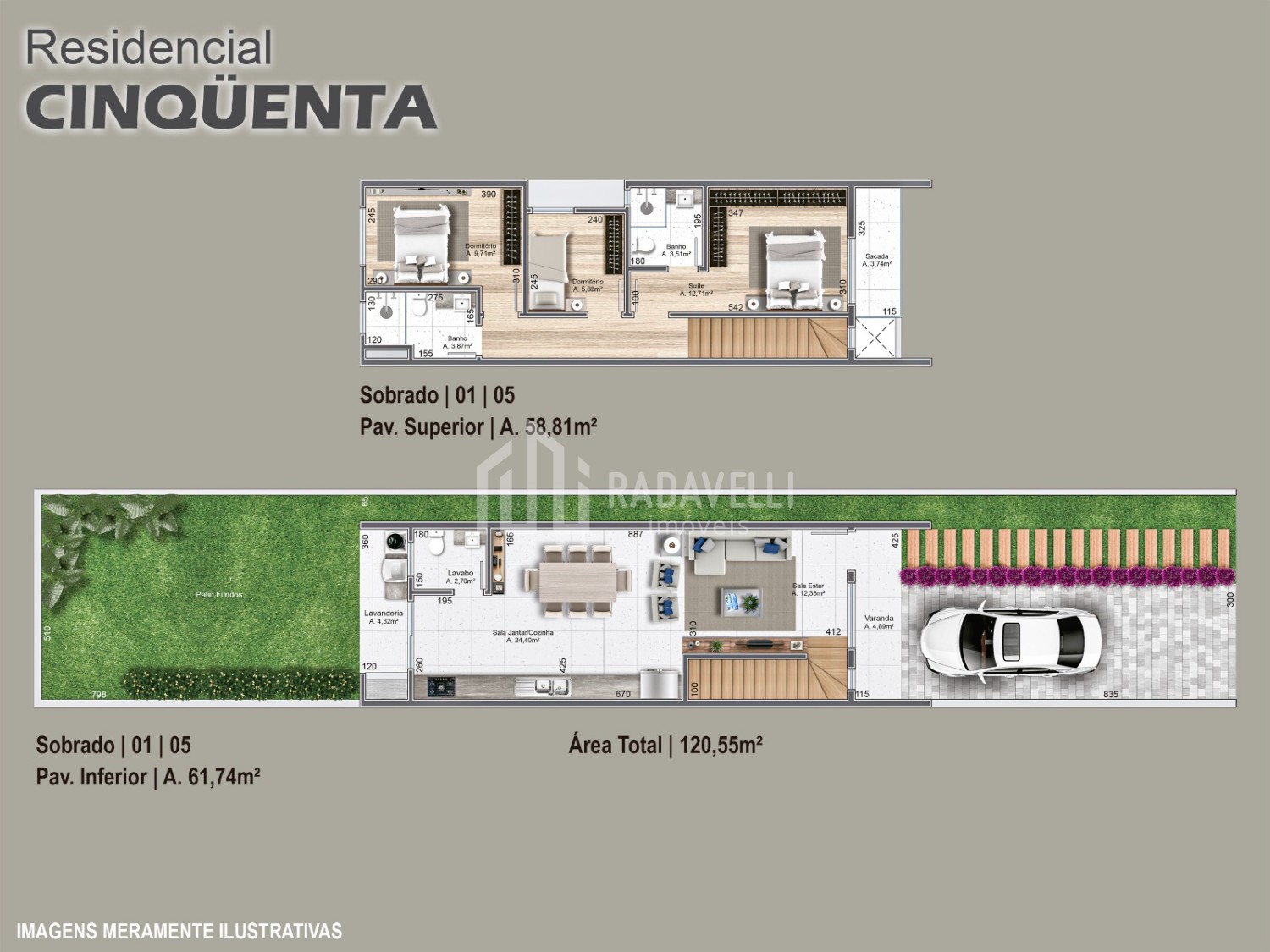 Descrição › Sobrado Nº 01: Área de 120,55 m2, composto de 01 suíte com sacada + 02