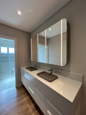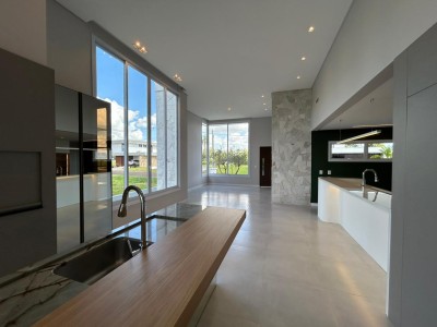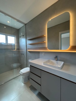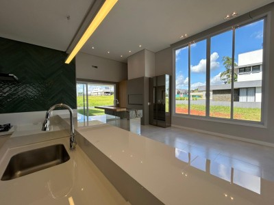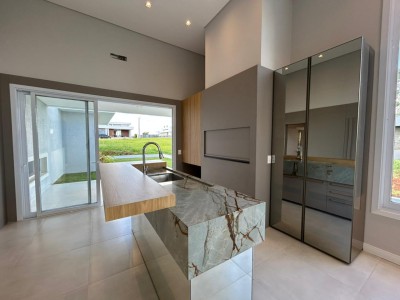 Descrição › Casa no condomínio BLUMEN PARK PREMIUM SEMIMOBILIADA contendo 3 suítes, 3 banheiros, 1 lavabo, sala de estar e jantar integrados, cozinha, área gourmet, área de serviço separada, espaço para home office, garagem para até dois carros.