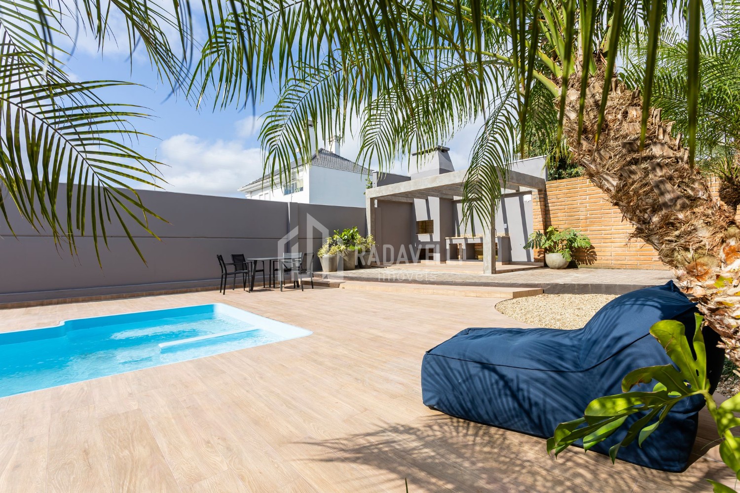 Descrição › Encante-se por esta maravilhosa casa em Lajeado, no bairro Carneiros. Com 04 dormitórios, sendo 02 suítes com piso em taboão, mezanino, sala de estar e jantar, sala de TV, espaço gourmet, cozinha mobiliada com eletros, despensa, quarto de empregada com banheiro, área de serviço, 02 garagens para 03 carros, quiosque, piscina e espaço para home office na garagem. Com uma área total de 492,38m², este imóvel é perfeito para quem busca conforto e sofisticação. Agende uma visita e apaixone-se por cada detalhe desta incrível residência!