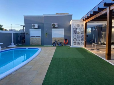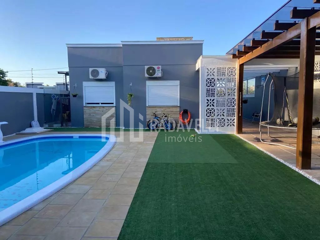 Descrição › Localizada no bairro Moinhos, em Lajeado, esta bela casa de 4 dormitórios, sendo 2 suítes, é o lar dos seus sonhos. Com uma suíte principal com closet, sala de estar aconchegante com lareira, cozinha integrada à área de jantar, amplo pátio nos fundos com piscina, varanda com grama sintética, sauna e 2 cisternas para recolhimento de água da chuva e placas solares, esta propriedade oferece conforto e praticidade. Além disso, conta com garagem para 4 carros. Entre em contato com a Lajeado Imóveis e descubra mais sobre essa incrível oportunidade!